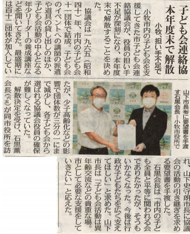 子ども会の現状は、少子高齢化の進展により、団体数や加入率の減少など、多くの課題を抱えています。しかしながら、子ども会活動は、子ども達にとって、身近な地域社会における仲間集団の形成と異年齢交流の活動は、社会の基本を学ぶことでもあり、現代社会のように人間関係が弱くなっている状況では、非常に貴重な体験を与えるものといえます。地域を基盤とした仲間作りと体験を通じて、心身の成長発達に欠くことのできない、貴重な教育的活動でありますので、本市におきましても、しっかりと支えていってほしいと思います。