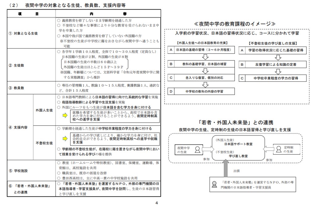 愛知県は、外国にルーツを持つ生徒等の教育を支援する夜間中学を小牧高校、一宮高校、豊田西高校に2026年4月に開校することを発表しました。夜間中学は、不登校で十分な教育をうけられていない生徒も対象となるとのことで、学び直しの場にもなります。小牧市は、不登校児童生徒も多く、自身も令和5年小牧市議会第一回定例会で児童生徒の不登校について一般質問をし、その中で、適応指導教室等を増やしてほしいと要望したばかりでした。夜間中学の開校は正に朗報です。期待しています。