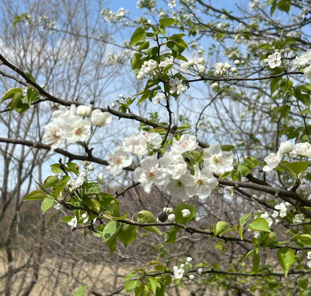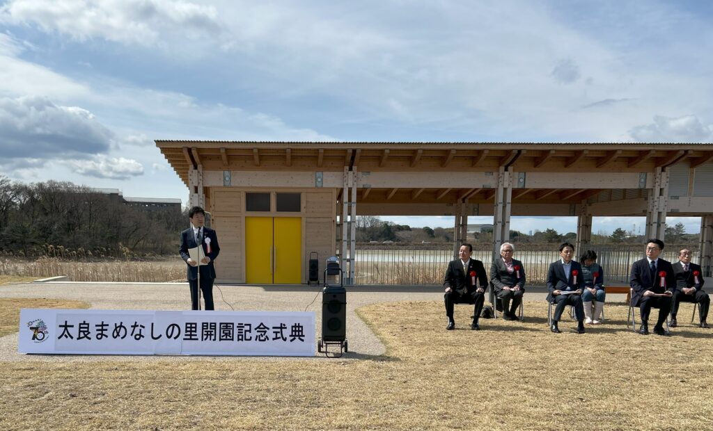 令和7年3月30日、「太良まめなしの里」開園記念式典が開催されました。この「太良まめなしの里」は、小牧市の東部丘陵地にあり、太良上池、太良下池、白兵池の3つの農業用をため池を中心とした緑地で、一部に愛知県指定の天然記念物「大草のマメナシ自生地」があります。マメナシは、3月下旬から4月初旬頃に白い花を咲かせ、国内では愛知、岐阜、三重の一部だけに自生する大変珍しい植物です。式典の後、自生地に入り、マメナシを観察しました。