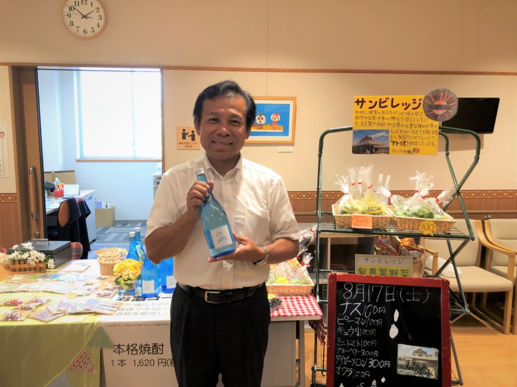 サンビレッジは、小牧市岩崎で農業を中心に知的に障害のある方の就労支援を行っています。写真は、市内の耕作放棄地4カ所(総面積4,000㎡)を活用し、丁寧に育て収穫した「なると金時」を一部使用した本格芋焼酎です。私も農業と福祉の連携に向けた活動を支援していきたいと思います。