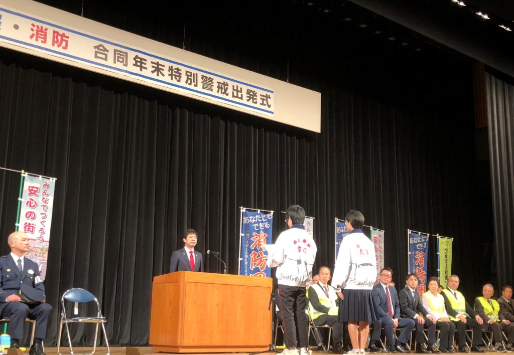 警察・消防 合同年末特別警戒出発式に参加しました。