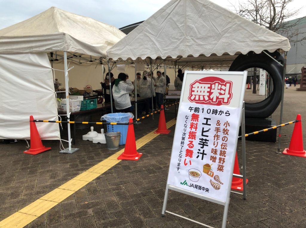 小牧シティマラソン大会で恒例となりました、JA尾張中央による「エビイモ汁」を約2000食振舞っていました。皆様お疲れ様でした。
