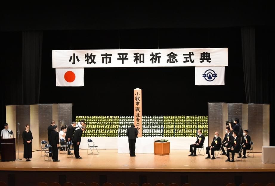 本日午前、小牧市平和祈念式典が小牧市民会館で開催されました。新型コロナウイルス感染拡大防止のため、開催規模を縮小し予防措置を講じての式典でした。今日、私たちが享受している平和と繁栄は、祖国のために心ならずも命を落とされた戦没者の方々の犠牲の上に築かれていることに思いを致し、戦没者の方々に敬意と感謝を捧げました。改めて平和について考え、平和の尊さに対する認識を深めました。