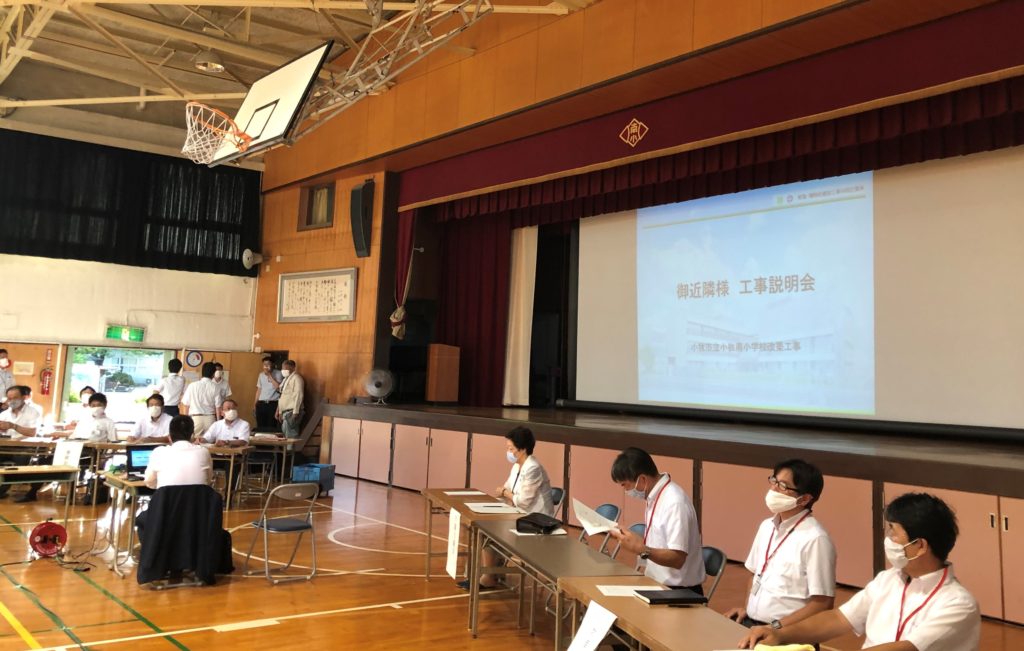 8月11日(火)午後6時より小牧南小学校体育館にて、改築工事に関する説明会が行われました。小学校校区内の区長さんをはじめ、近隣の方々を交えて説明及び質疑回答がありました。児童の安全確保、周辺の駐車関係、施設開放についてなど多岐にわたり質疑がありました。本日より新築工事開始。令和4年3月末までに新校舎へ引越し。令和4年4月より旧校舎の解体工事。令和5年3月には全面供用開始予定です。工事の安全と計画が予定通り進みますようお祈りいたします。