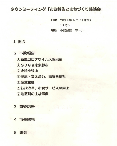 タウンミーティング「市政報告とまちづくり懇談会」