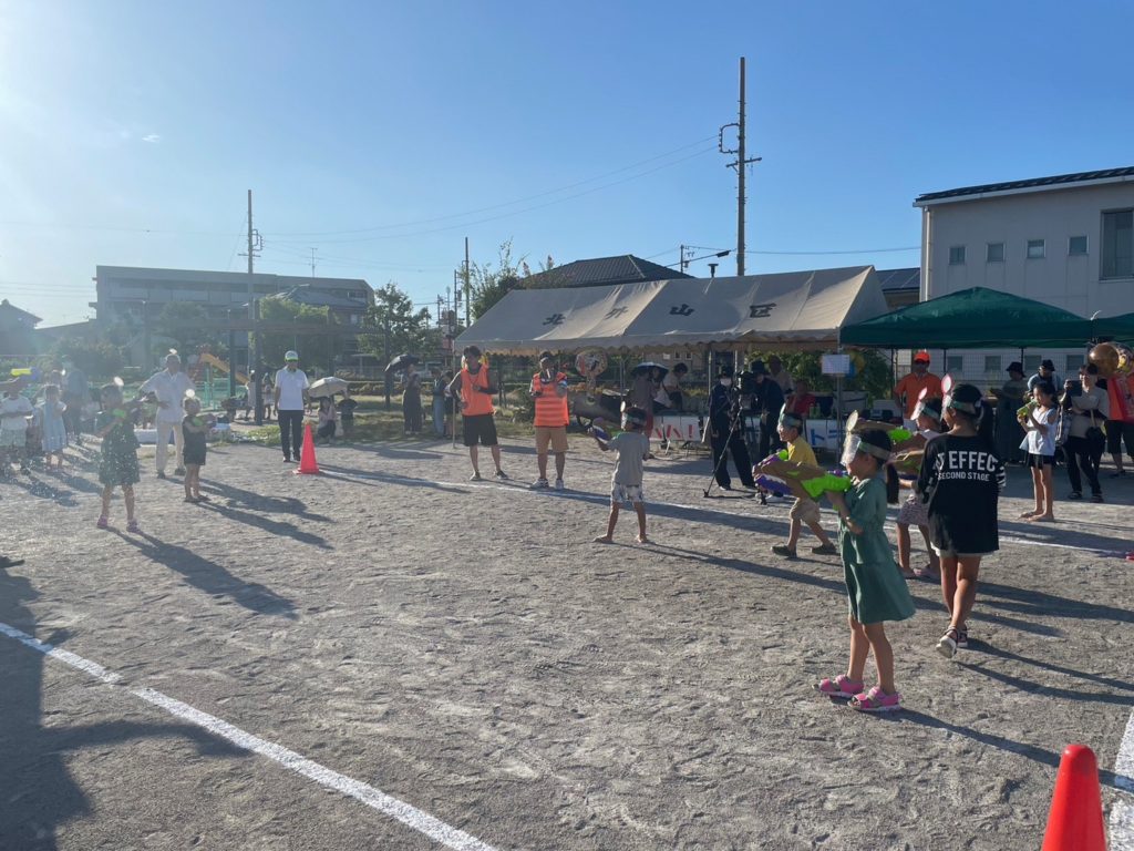 令和5年8月11日(金)ふらっとみなみにて、北外山区主催の水鉄砲大会「アハハ!ポイポイバトラー」が開催されました。本年、北外山区の盆踊り大会が中止となり、区の子ども達の夏の思い出づくりとして、大会の企画から携わってきました。盆踊りで聞けなかった「ダンシングヒーロー」をBGMとし、お互いのポイを目掛けて水鉄砲が炸裂。全体で約80名の参加者があり、大変な盛り上がりでした。来年も開催されることを期待しています。(CCNetの取材がありました)