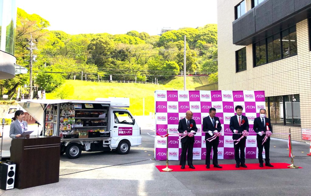 小牧市とマックスバリュ東海(株)及び小牧市社会福祉協議会が「買い物支援と地域の見守り活動推進に関する協定」を締結し、この度、マックスバリュ東海(株)による移動販売が開始されました。今回は、巾下地区と北里地区の2地区ですが、7月までに市内全域で展開予定です。年配の方にとっては、買い物ができる喜びや地域の方々とのコミュニケーションの場づくりとしても、とても良い取組であると思います。