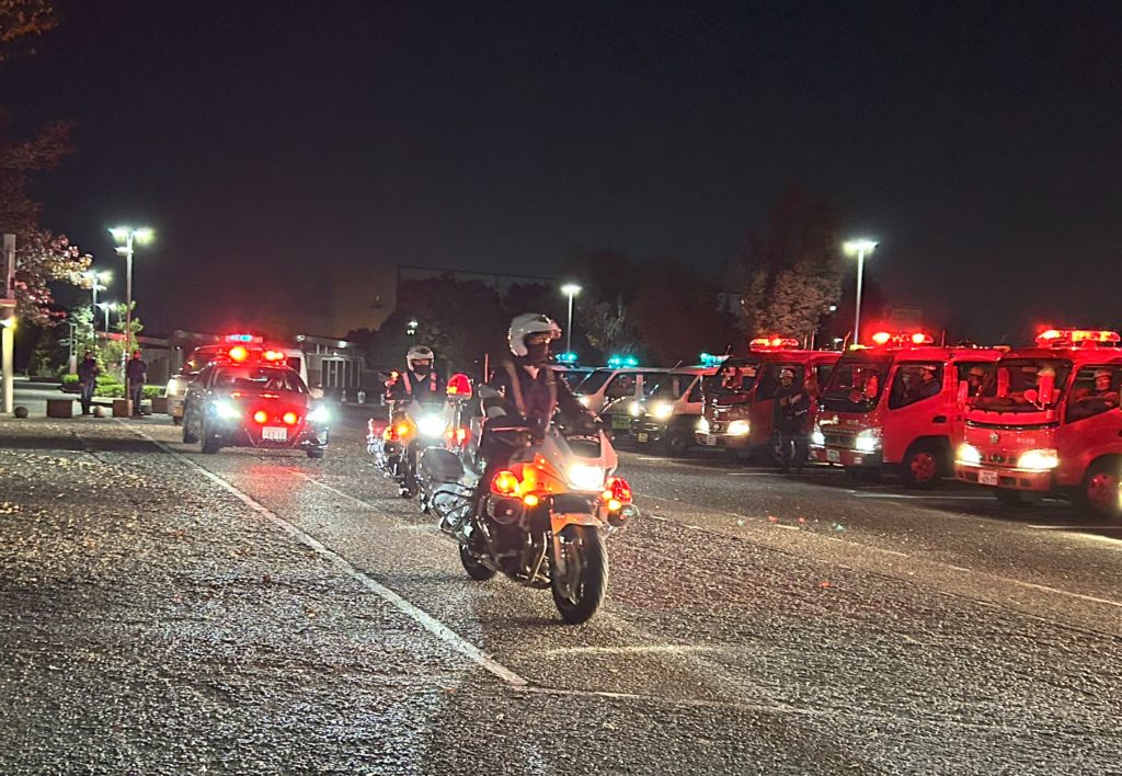 令和6年12月2日、パークアリーナ小牧にて「年末特別警戒出発式」が行われました。交通安全、防犯・防火の対策強化に向け、地域の皆様への啓発活動の取り組みです。春日寺区防犯パトロール隊応中生の「安全安心なまちづくり」宣言の後、警察署員、消防団、青色回転灯装着車両を保有する自主防犯パトロール団体がそれぞれの車両で市内各地域のパトロールに出発しました。いつもありがとうございます。