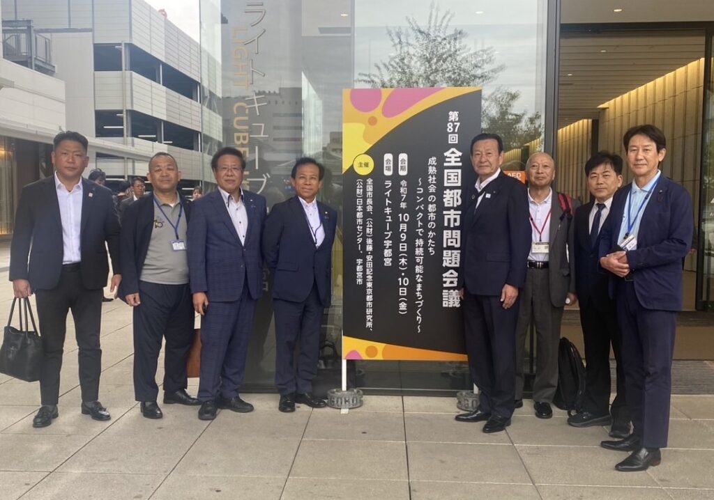 第87回全国都市問題会議 成熟社会の都市のかたち~コンパクトで持続可能なまちづくり~をテーマに宇都宮市で開催されました。本市においても持続可能でコンパクトなまちづくりを進めてるため、都市基盤整備事業をはじめ計画的に推進を図っているところです。将来的な人口減少及び高齢化に対応すべく全国の先進事例を学びました。公共交通の利用促進や次世代交通、健康都市づくりなど、本市としても参考となる議題でした。